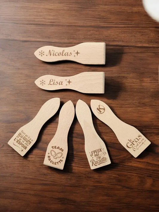 Spatule raclette personnalisée - Gravure sur bois, idée cadeau de noël spatule gravée