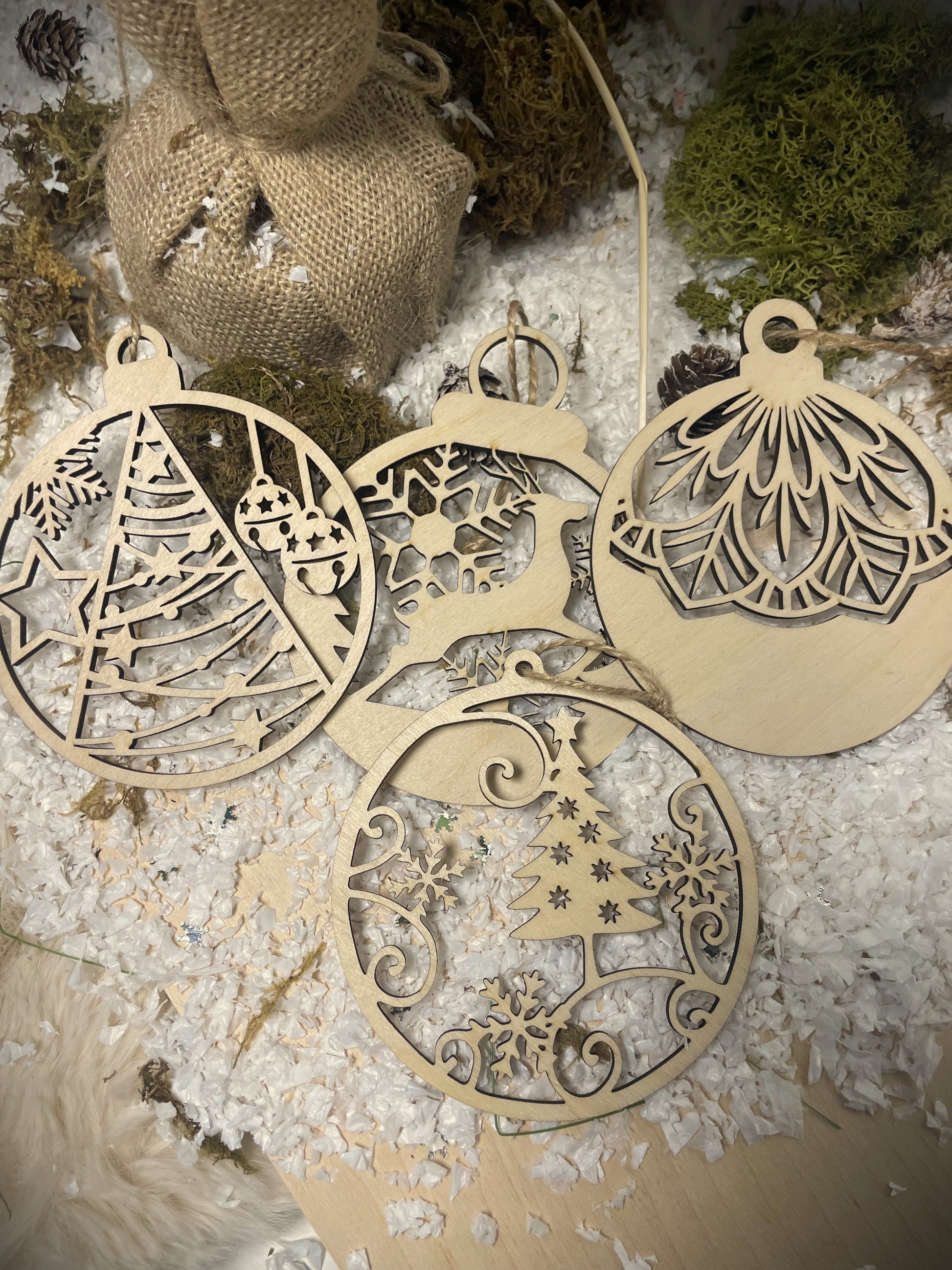 Boule de noël en bois vierge Plusieurs Motifs : boule à décorer/peinture, Décoration Sapin de Noël