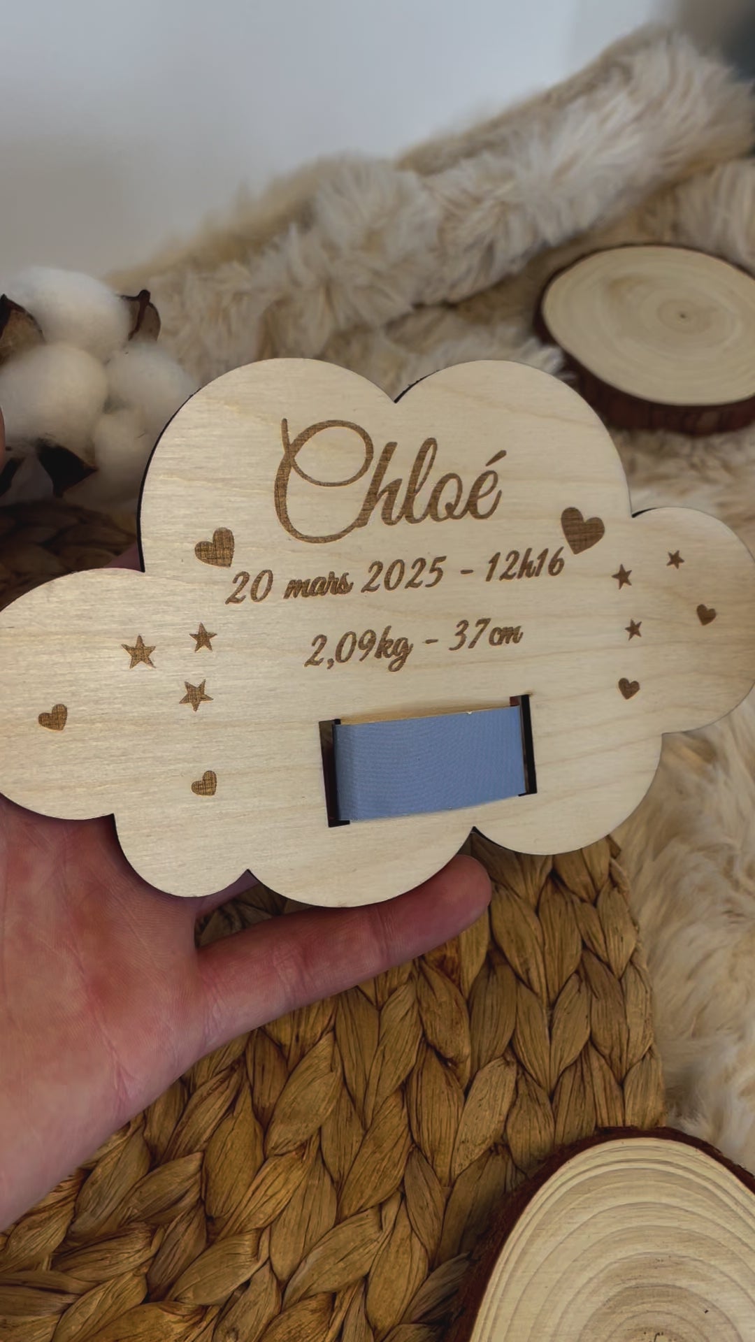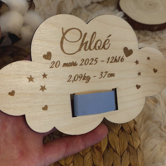 Cadre bracelet de naissance bois forme nuage - cadeau de naissance 🎁👶