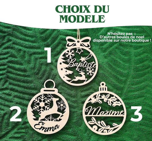 Boule de noël prénom bois (Décoration de Noël, Ornement personnalisé pour sapin)