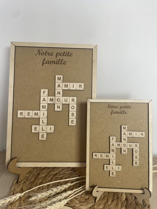 Cadre Scrabble personnalisé relief – Décoration familiale avec prénoms ou mots doux