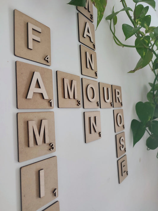 Lettres Scrabble bois relief 3D : grosses lettres décoratives en bois XXL