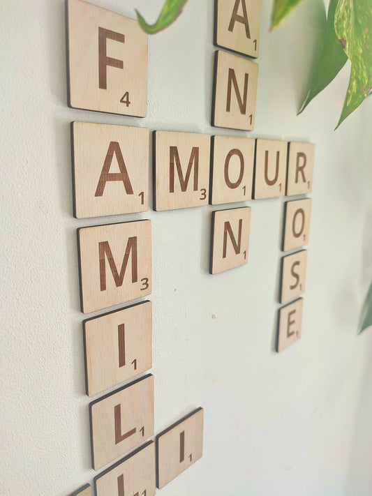 Lettres scrabble en bois - gravure sur bois : grosses lettres décoratives XXL